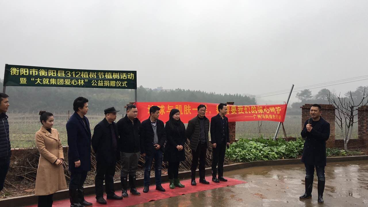 春意盎然、万物复苏,衡阳市衡阳县植树节植树活动暨“大就爱心林”公益捐赠仪式于2017年植树节当天成功举行。 当天出席活动的有衡阳县委常委、组织部长阳旭辉、林业局长刘载宋、副局长工会主席傅同生、县宣传部副部长唐春晖、三湖镇党委书记熊国样、镇长蒋辉亮、湖南省森成果林科技有限公司董事总经理方紫蓝、湖南省森成果林科技有限公司董事总园艺师施健生、大就商会互联网产业委员会主席兼玛尚负责人张健等领导。 ![]() ![]() 玛尚公司通过捐建爱心林的方式,响应中共中央总书记习近平主席“发扬前人栽树、后人乘凉精神,多种树、种好树、管好树,让大地山川绿起来,让人民群众生活环境美起来”的号召,通捐赠义务植树的方式,让“爱心林”在衡阳市衡阳县的热土上落地生根。 ![]() ![]() ![]() 玛尚负责人张总表示,作为企业人,植树造林是一种义务,更是一种责任,“爱心林”在衡阳市衡阳县这片热土上落地生根,将爱心树苗种植于此,以此表达对国家、对政府、对社会的一份“赤子之心”,今后也会一如既往的关注爱心林的成长态势,努力为植树造林贡献力量,达到改善生态环境的目的! ![]() ![]() ![]() 地球与肌肤一样,都需要我们的细心呵护,绿色行动,玛尚开始! |