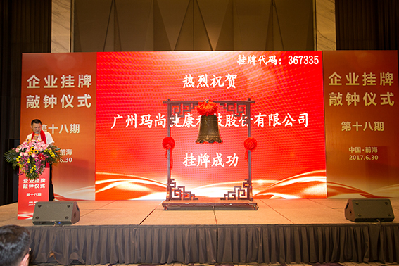 6月30日,广州玛尚健康科技股份有限公司(下称玛尚)正式在前海股权交易中心挂牌上市,挂牌代码为367335,这标志着玛尚迈向资本市场的第一步,宣示玛尚人要把玛尚做大做强的决心。也是玛尚发展史上的里程碑和新起点,展现玛尚进一步规范公司发展、追求公司品牌增值和实现公司市值科学管理方面迈上了新台阶,是玛尚实现跨越式发展的助推器,有利于进一步完善其法人治理结构,提升品牌市场影响力。