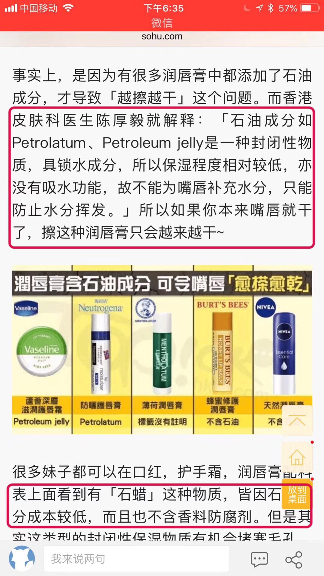 然后发现有人发出这个截图 ↓↓↓ WHAT?润唇膏里竟然有石油?! 常年必备曼秀雷敦的我,怕是要中毒了吧!! 我赶紧去翻了翻资料 emmmm,纯属误会 能用在化妆品里的地蜡 一般都是高度提纯的,无刺激无毒性 而且还是经美国FDA认可 允许在食品、婴儿用品中使用